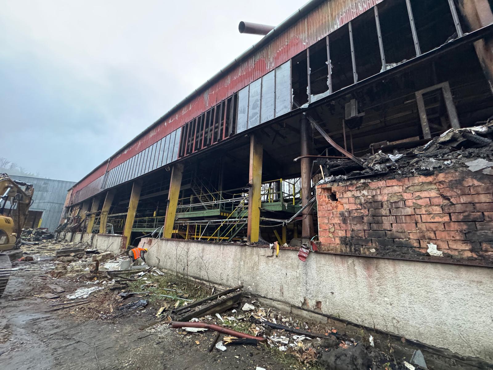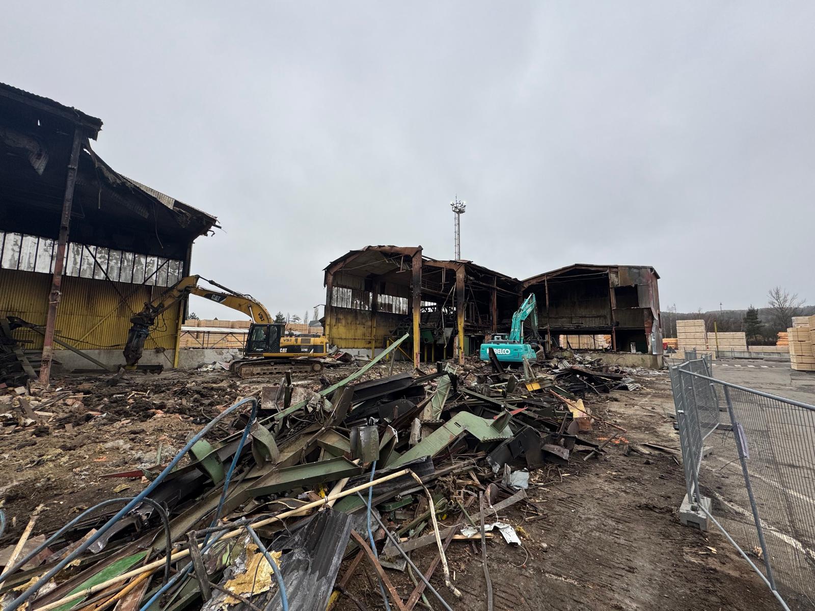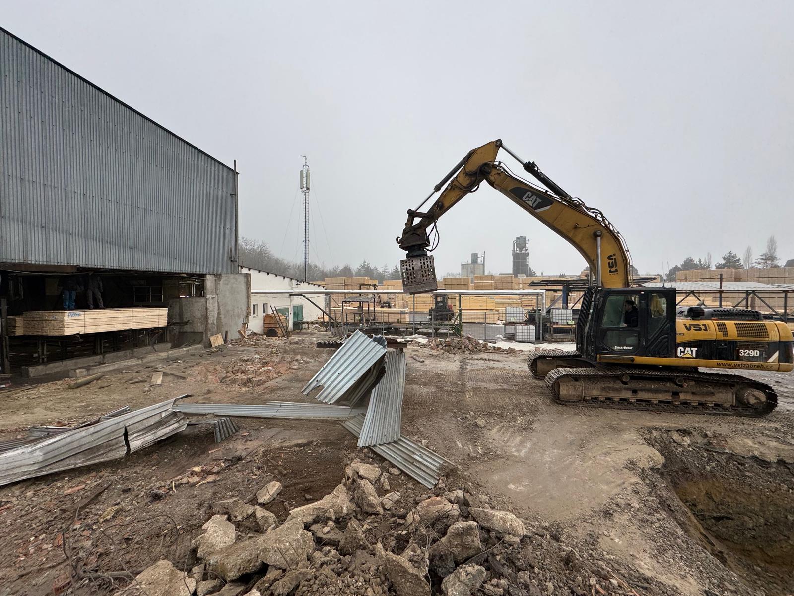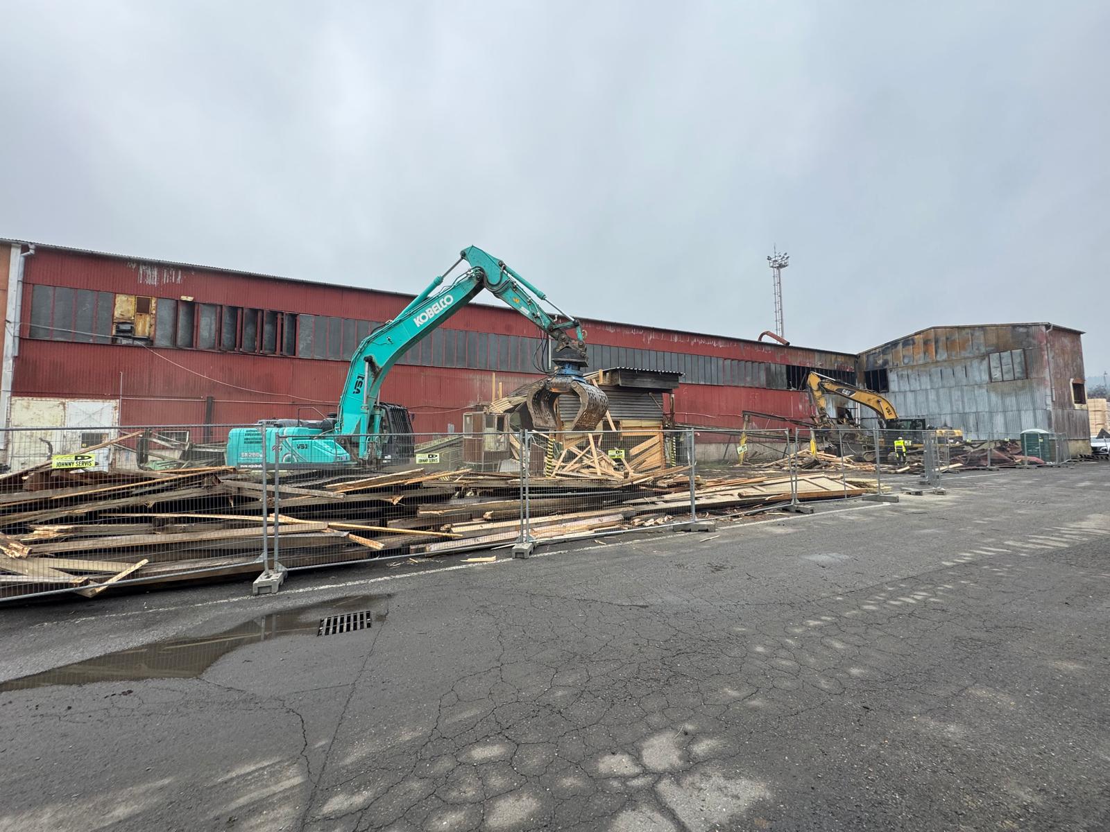 Demolici vyhořelé haly adjustace AD2, dopravu mechanizace, vyklizení haly, strojní demolici, nakládku a přesun stavební suti, drcení stavební suti, Nakládku, odvoz a uložení odpadu, strojní demolici betonových podlah, vytrhání patek a obvodových pasů, drcení betonu a odvoz.