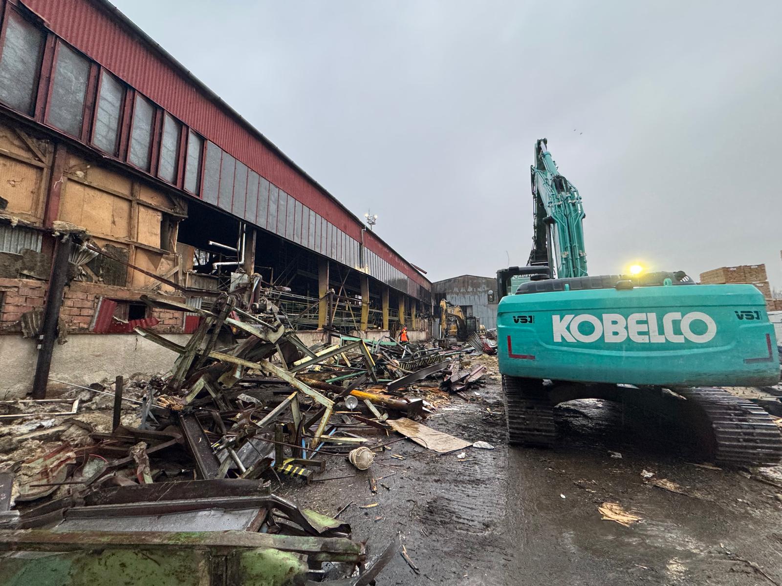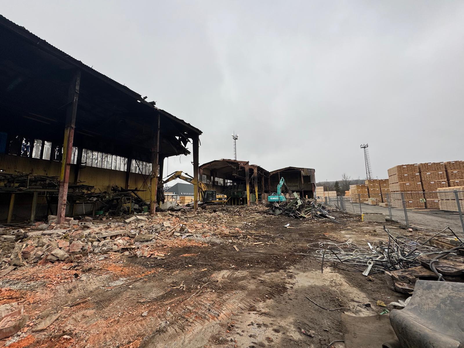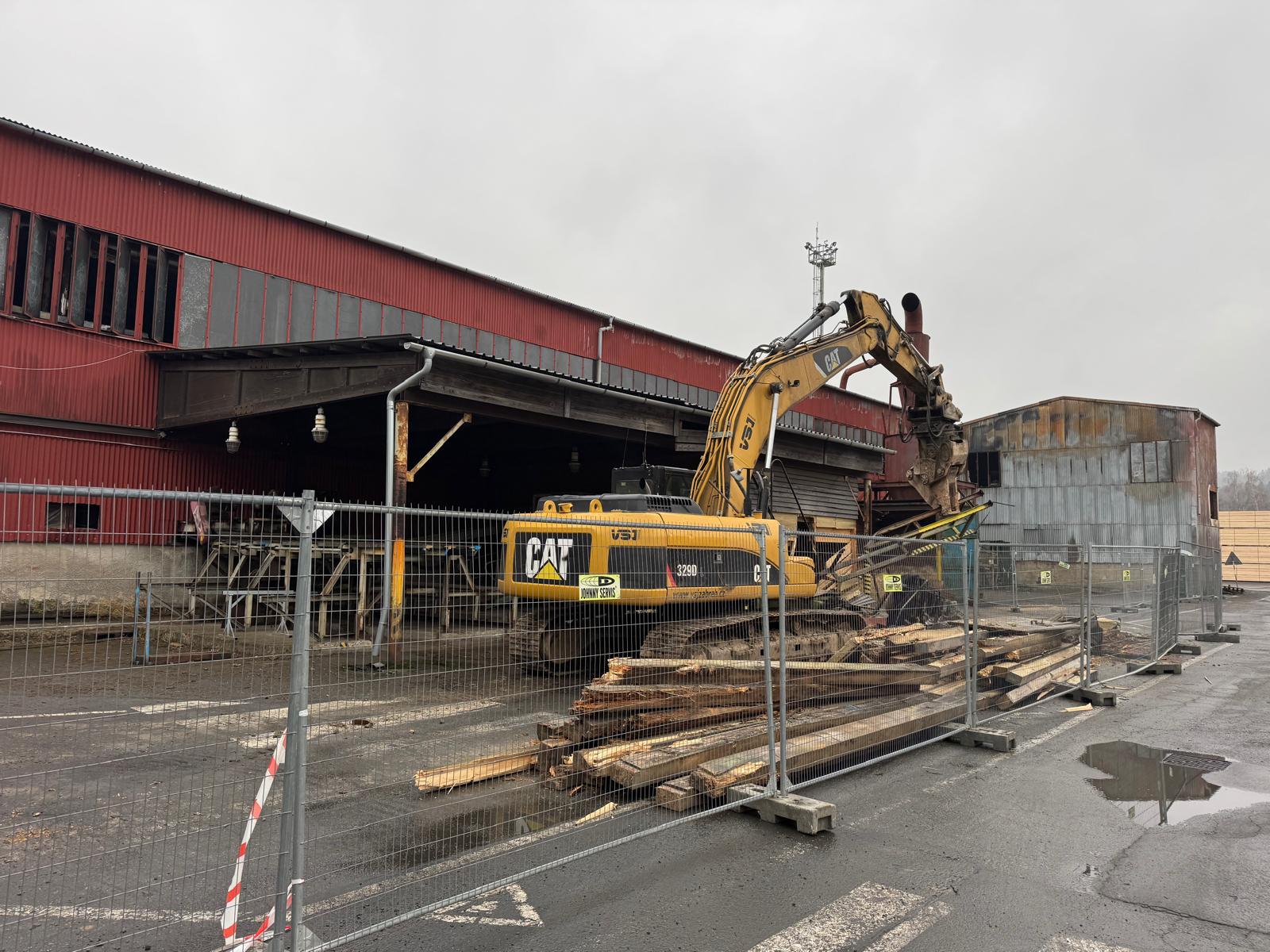 Demolici vyhořelé haly adjustace AD2, dopravu mechanizace, vyklizení haly, strojní demolici, nakládku a přesun stavební suti, drcení stavební suti, Nakládku, odvoz a uložení odpadu, strojní demolici betonových podlah, vytrhání patek a obvodových pasů, drcení betonu a odvoz.