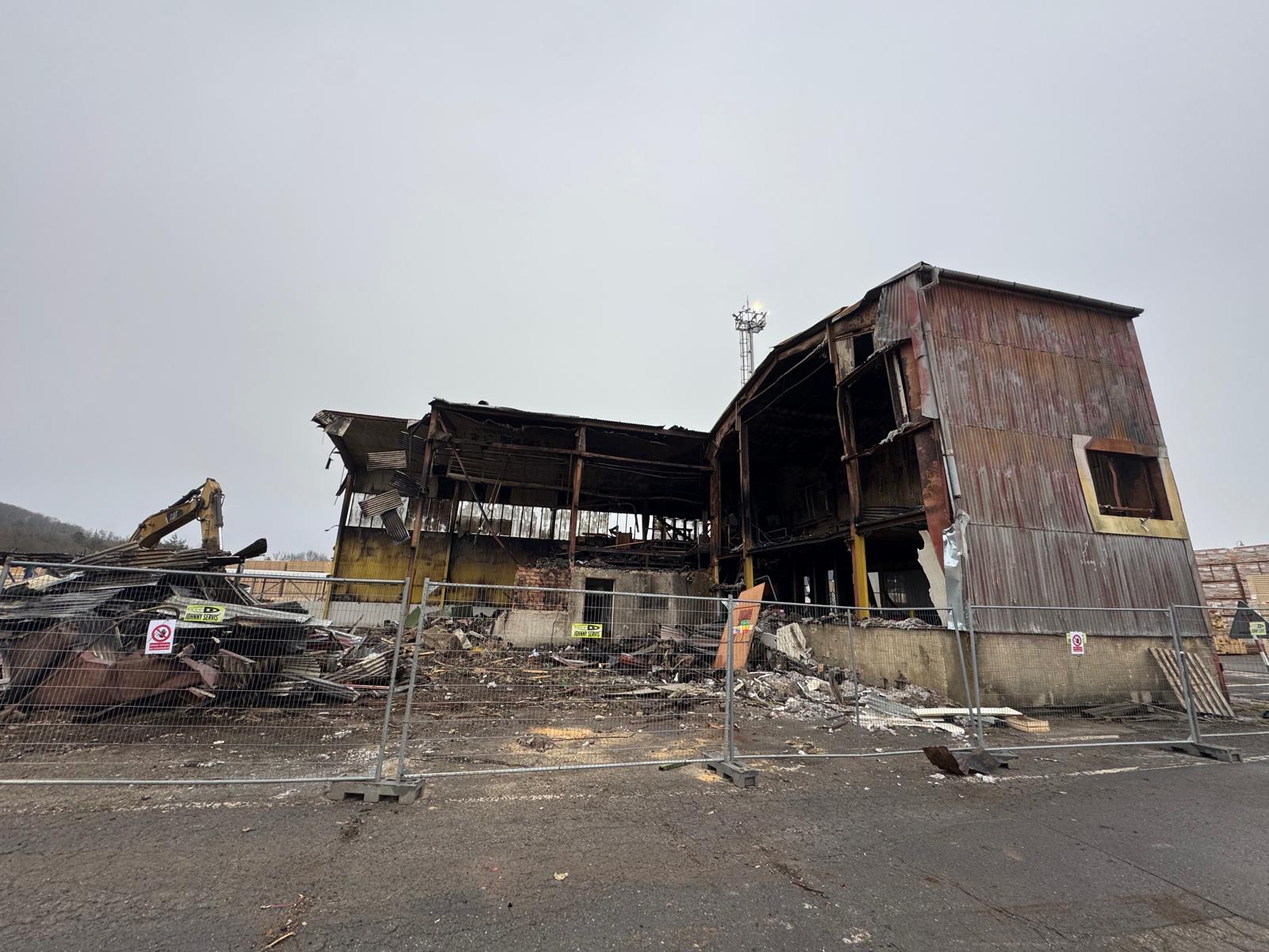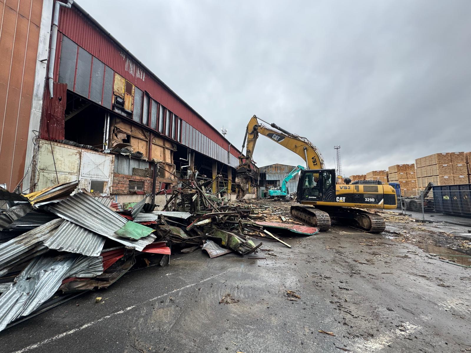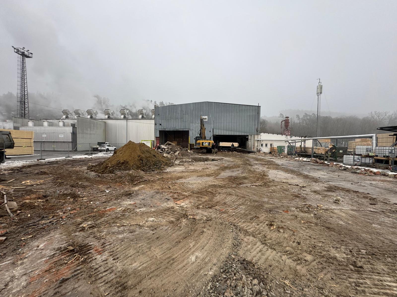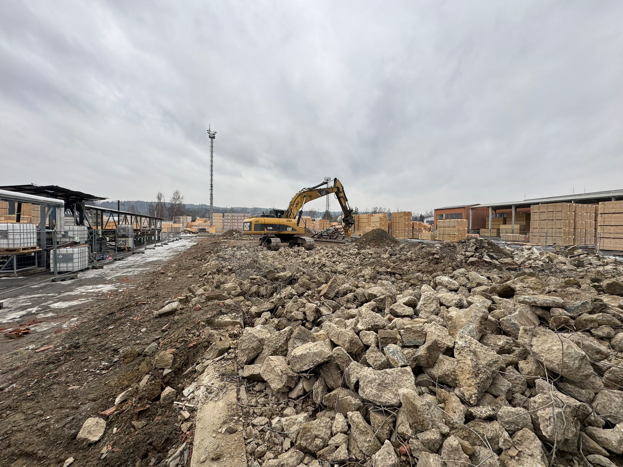 Demolici vyhořelé haly adjustace AD2, dopravu mechanizace, vyklizení haly, strojní demolici, nakládku a přesun stavební suti, drcení stavební suti, Nakládku, odvoz a uložení odpadu, strojní demolici betonových podlah, vytrhání patek a obvodových pasů, drcení betonu a odvoz.